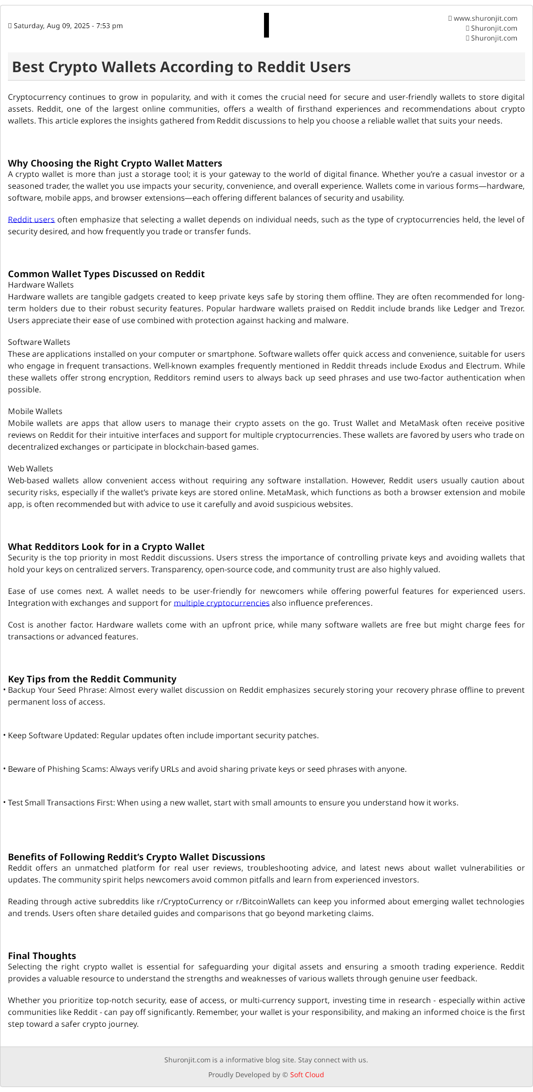 Cryptocurrency continues to grow in popularity, and with it comes the crucial need for secure and user-friendly wallets to store digital assets. Reddit, one of the largest online communities, offers a wealth of firsthand experiences and recommendations about crypto wallets. This article explores the insights gathered from Reddit discussions to help you choose a reliable wallet that suits your needs.