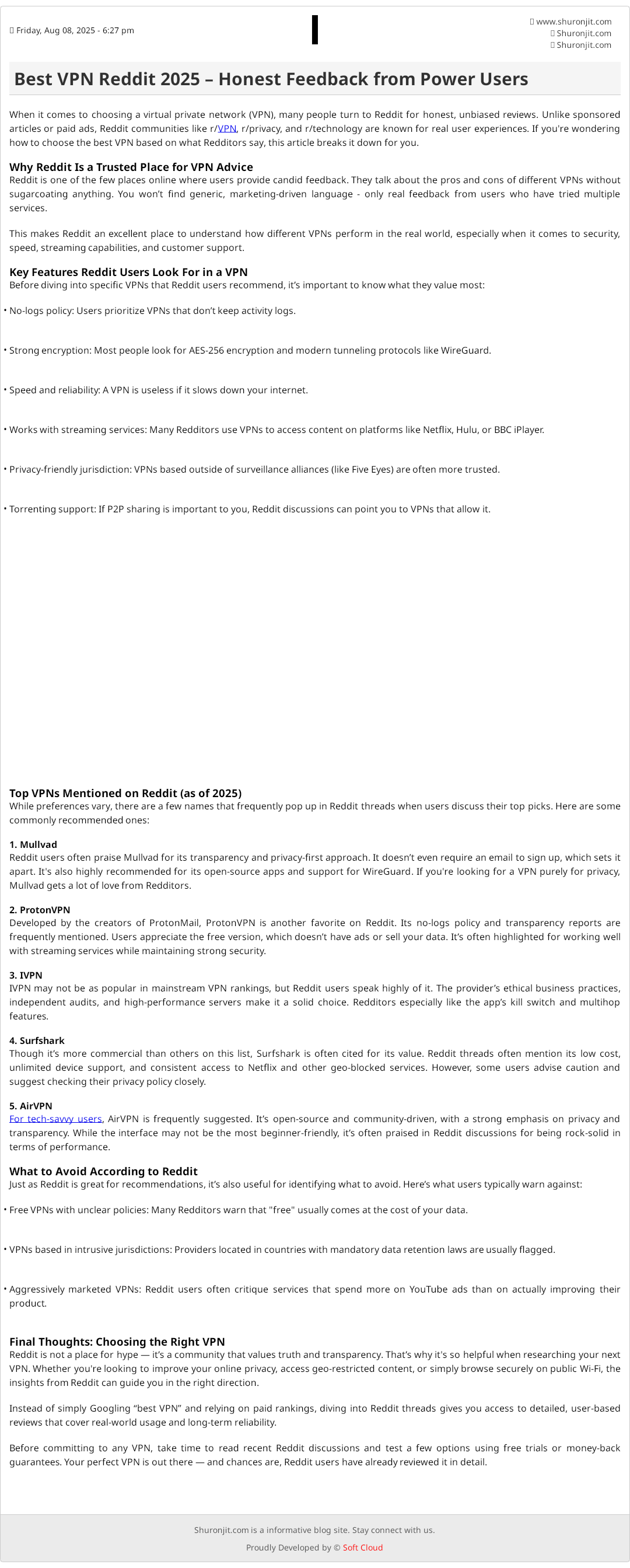 Instead of simply Googling “best VPN” and relying on paid rankings, diving into Reddit threads gives you access to detailed, user-based reviews that cover real-world usage and long-term reliability.