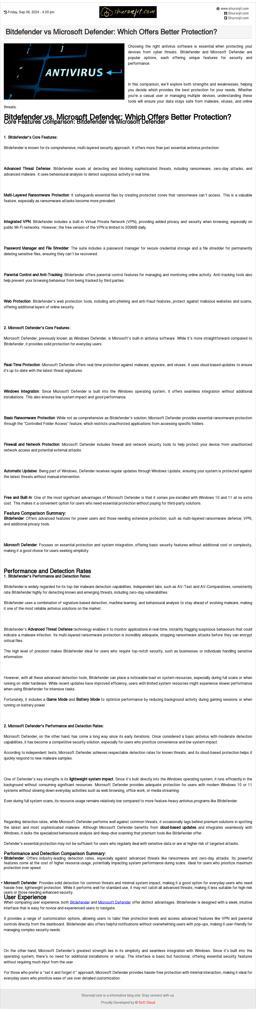 Choosing the right antivirus software is essential when protecting your devices from cyber threats. Bitdefender and Microsoft Defender are popular options, each offering unique features for security and performance.