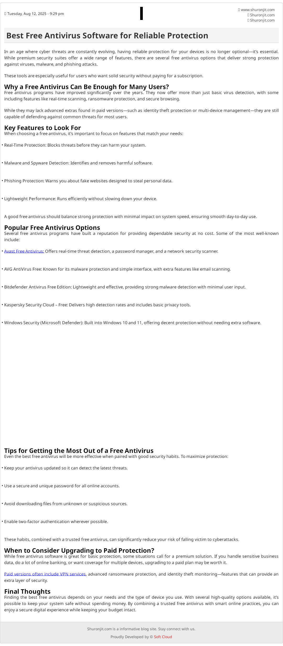 Finding the best free antivirus depends on your needs and the type of device you use. With several high-quality options available, it’s possible to keep your system safe without spending money. By combining a trusted free antivirus with smart online practices, you can enjoy a secure digital experience while keeping your budget intact.