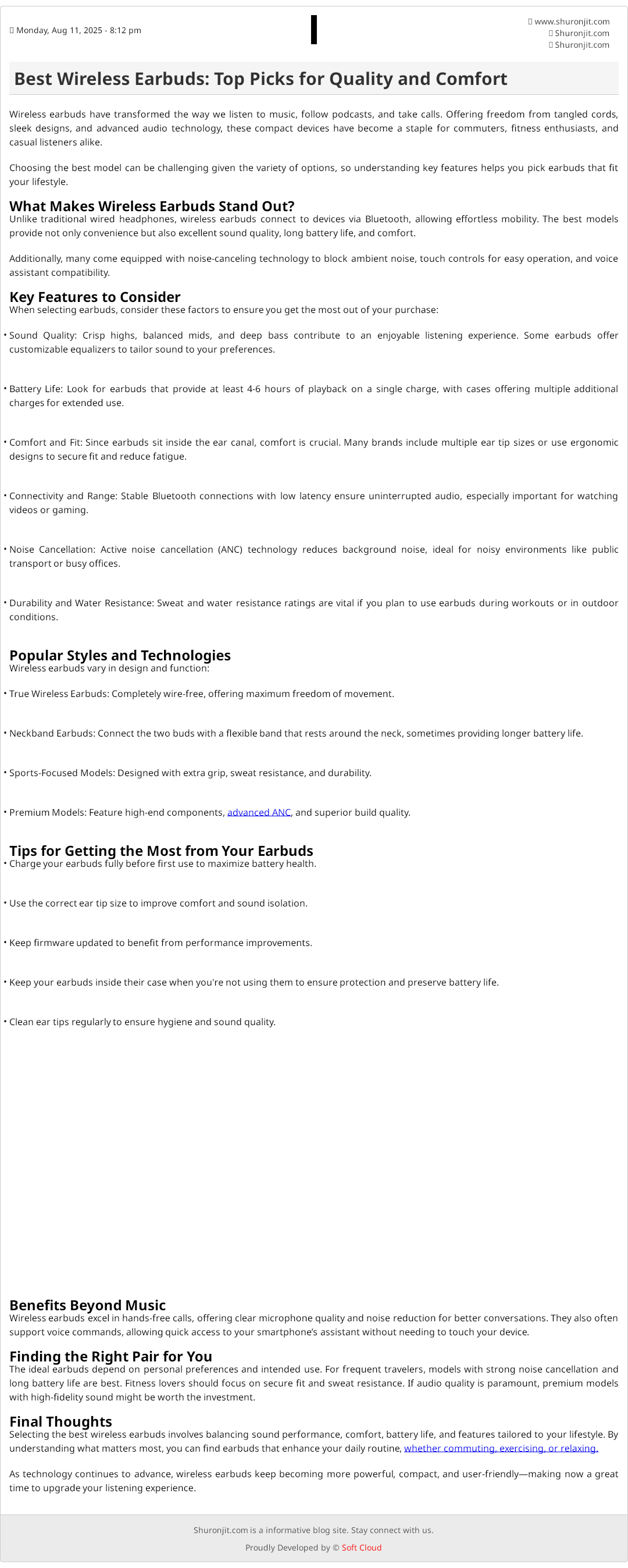 Selecting the best wireless earbuds involves balancing sound performance, comfort, battery life, and features tailored to your lifestyle. By understanding what matters most, you can find earbuds that enhance your daily routine, whether commuting, exercising, or relaxing.