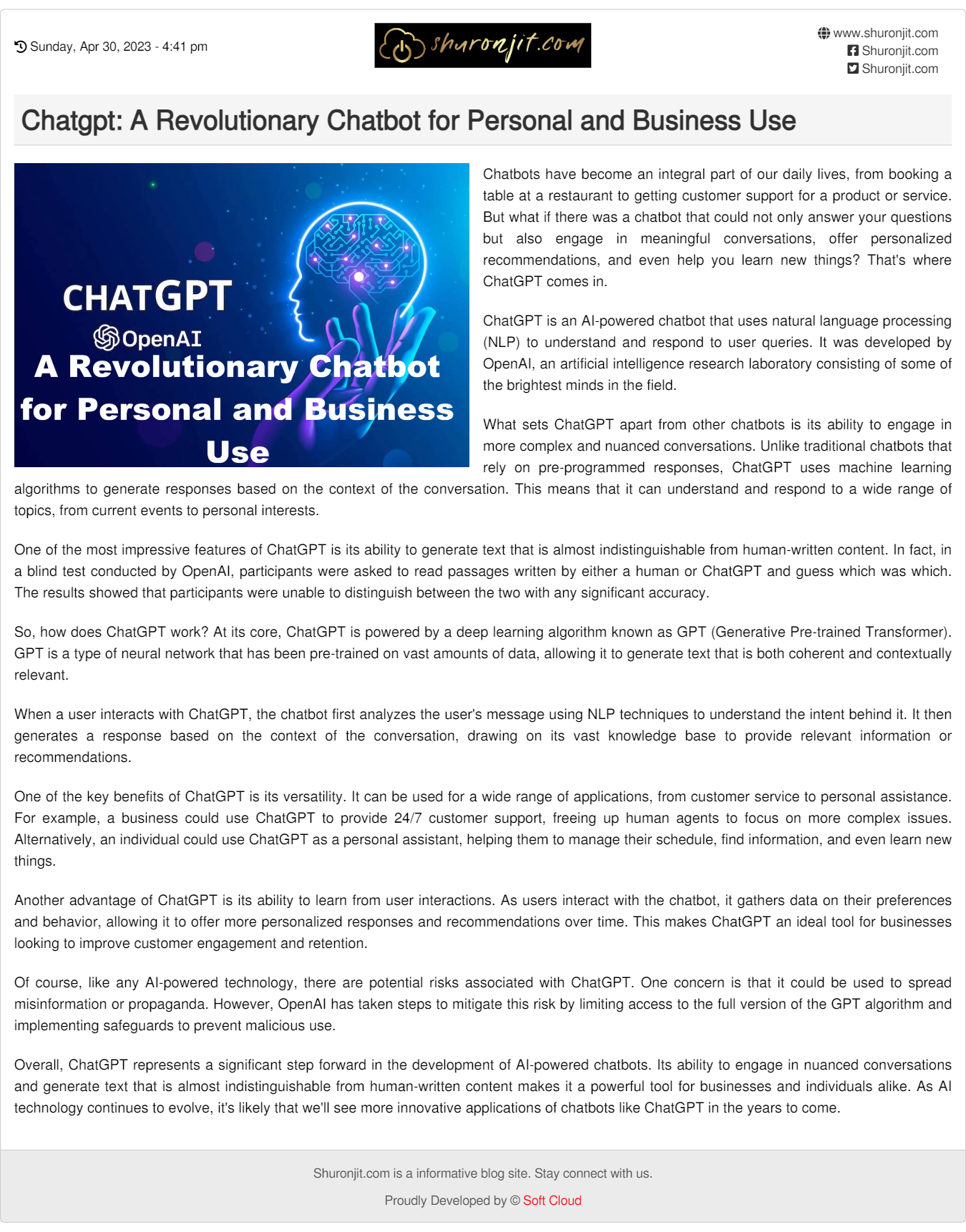 - Chatgpt: A Revolutionary Chatbot for Personal and Business Use