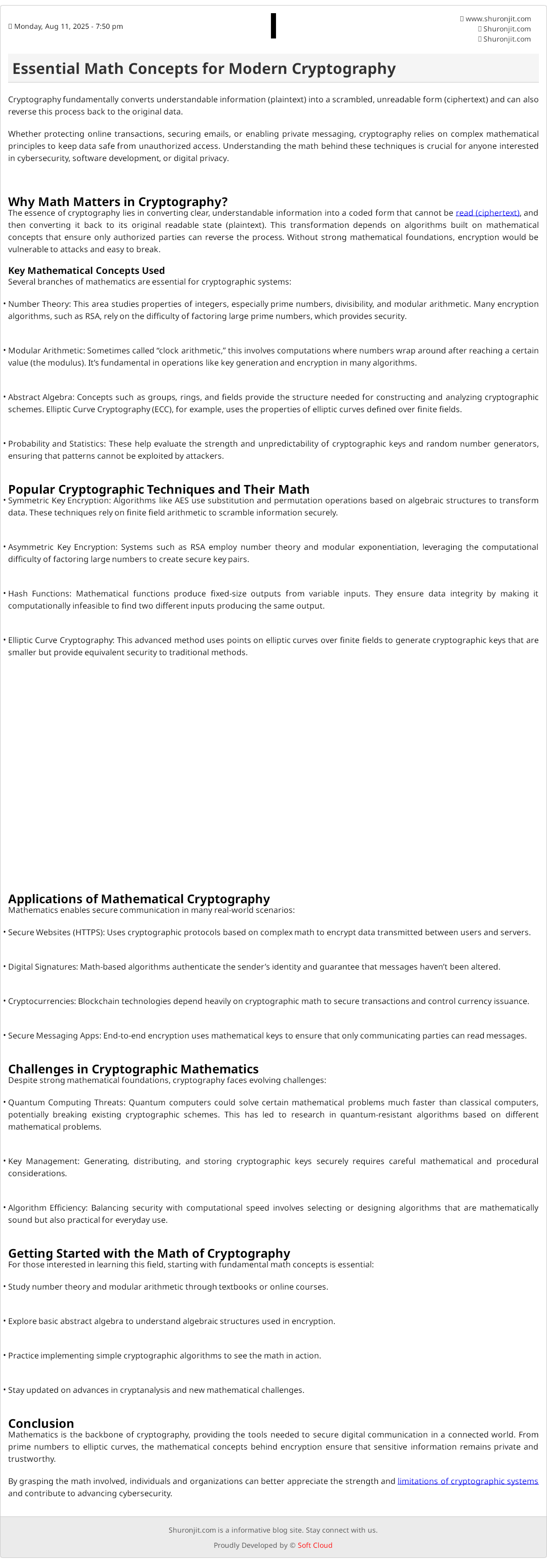 Whether protecting online transactions, securing emails, or enabling private messaging, cryptography relies on complex mathematical principles to keep data safe from unauthorized access. Understanding the math behind these techniques is crucial for anyone interested in cybersecurity, software development, or digital privacy.