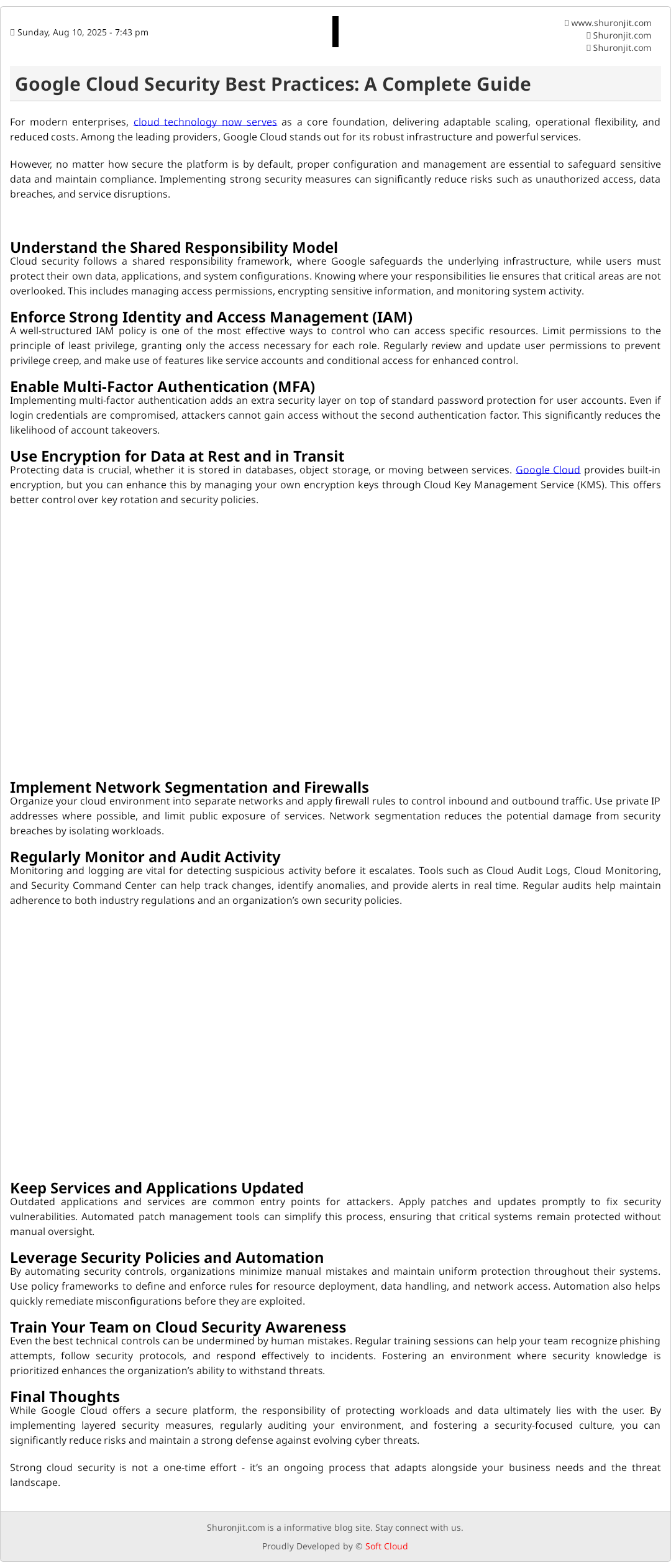 Cloud security follows a shared responsibility framework, where Google safeguards the underlying infrastructure, while users must protect their own data, applications, and system configurations. Knowing where your responsibilities lie ensures that critical areas are not overlooked. This includes managing access permissions, encrypting sensitive information, and monitoring system activity.