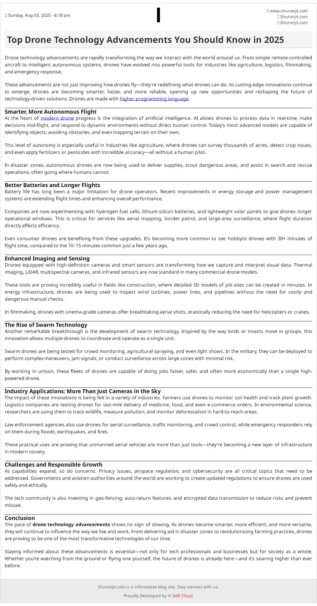 Staying informed about these advancements is essential—not only for tech professionals and businesses but for society as a whole. Whether you’re watching from the ground or flying one yourself, the future of drones is already here—and it’s soaring higher than ever before.
