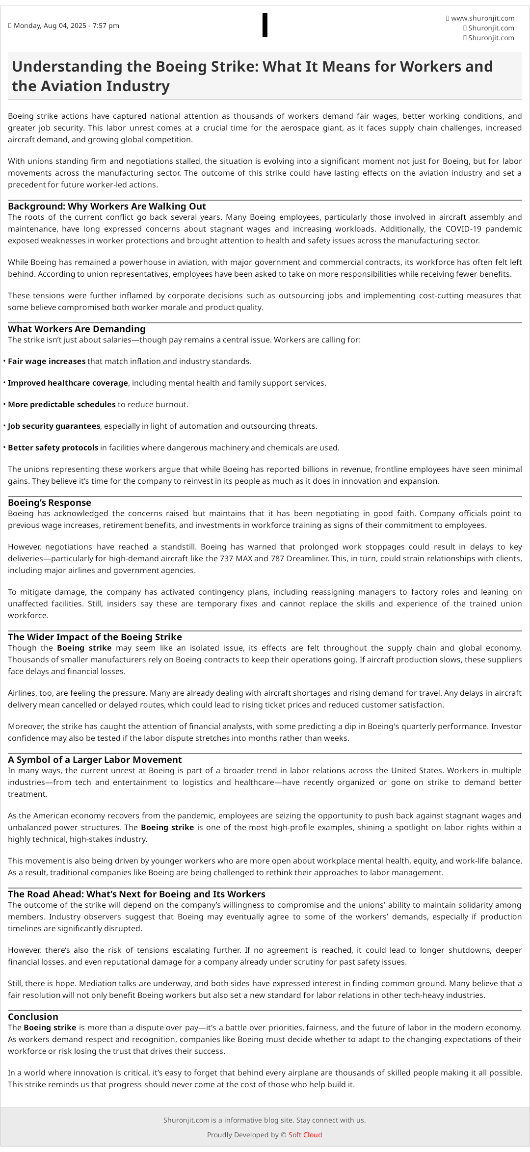 The outcome of the strike will depend on the company’s willingness to compromise and the unions' ability to maintain solidarity among members. Industry observers suggest that Boeing may eventually agree to some of the workers’ demands, especially if production timelines are significantly disrupted.